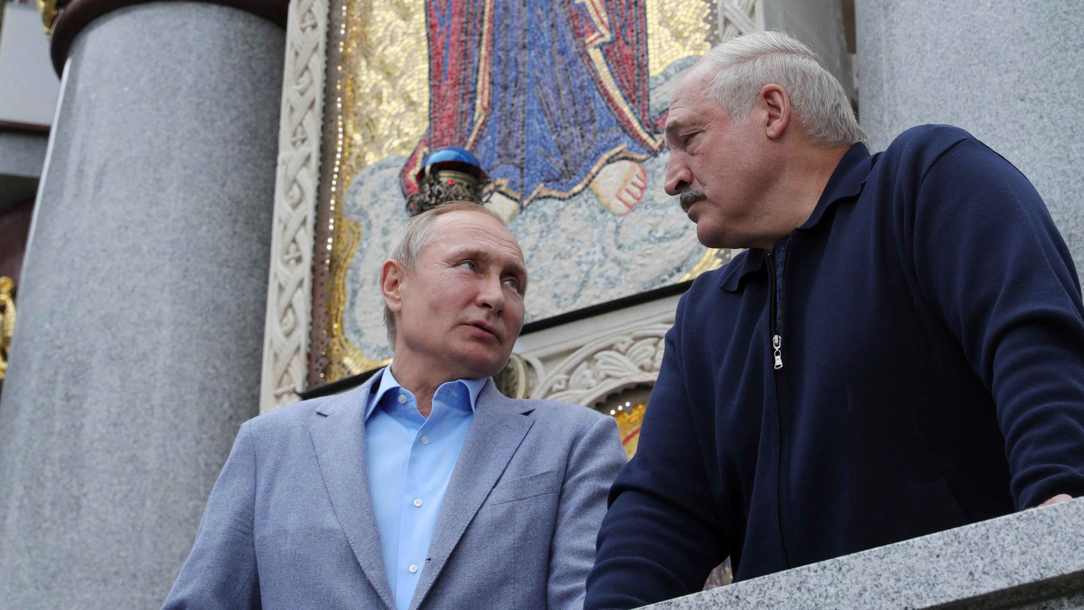 Президент России Владимир Путин (слева) и президент Беларуси Александр Лукашенко (справа) на Валааме 17 июля 2019 года. Фото: AFP